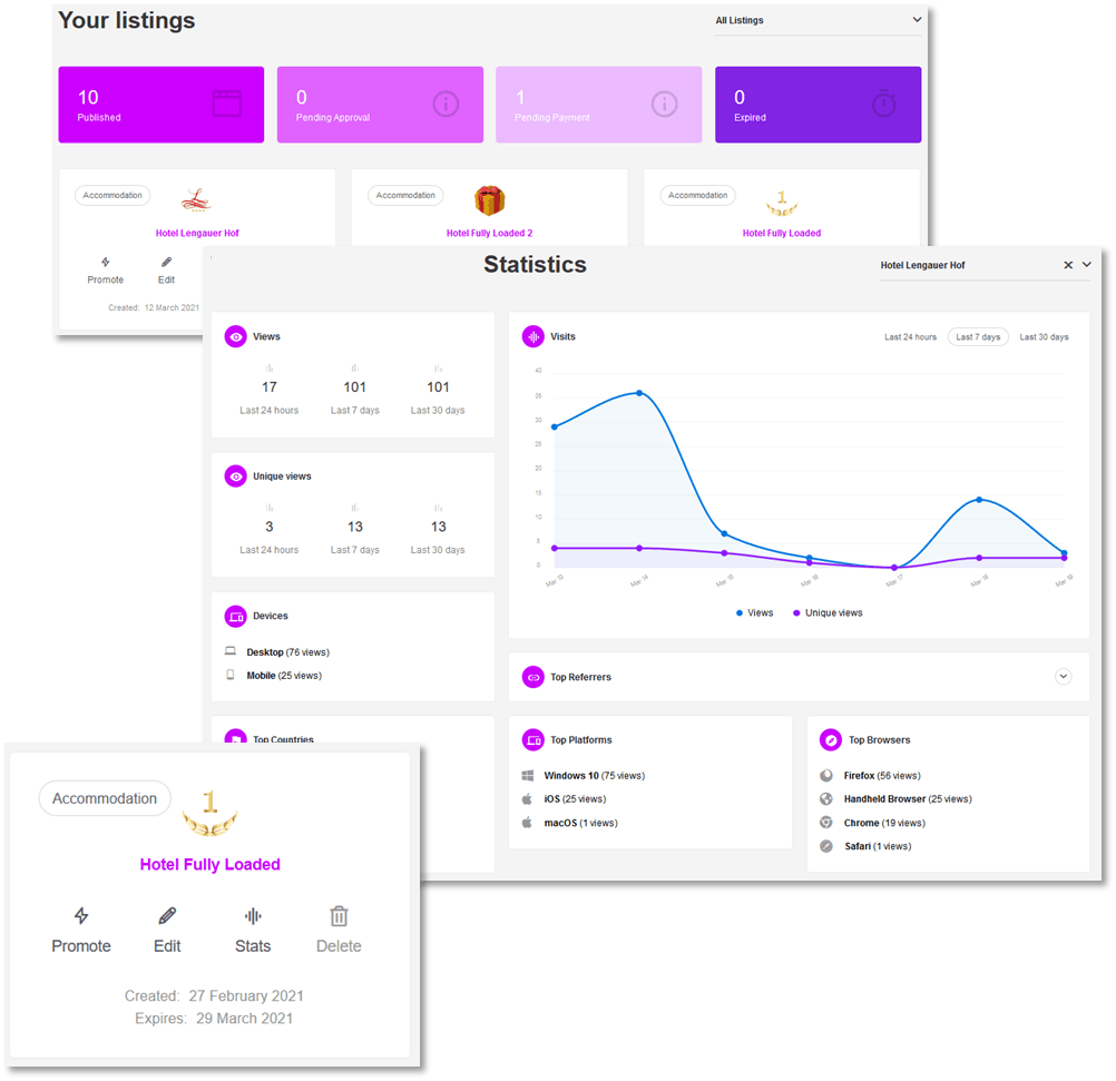 Your own exclusive dedicate dashboard to control your listing and get insightful data. So you know were your customers are coming from!